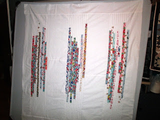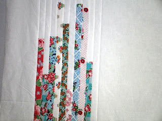 I used the pieces of fabric just as they were given to me. I didn’t cut them, just designed the quilt based on the fabrics as they were. Long narrow strips of fabric are referred to as “strings."